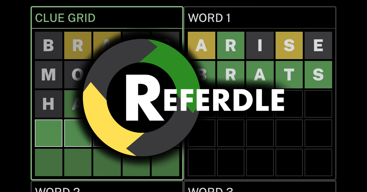 Put your logic and vocabulary to the test and deduce the five words that Cluebot guessed in the Clue Grid! You have 5 guesses per word to solve all five. A new Referdle is available each day to solve.