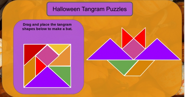 Halloween Tangram puzzles by Juliana Hodkinson. Make a copy. linktr.ee/Juliane.Hodkinson