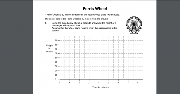 Model a periodic situation, the height of a person on a Ferris wheel, using trigonometric functions.